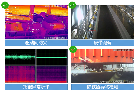 (1)多技术融合监测整合多种先进技术,全面覆盖皮带异常类型,故障检出率高,火灾隐患识别精准。